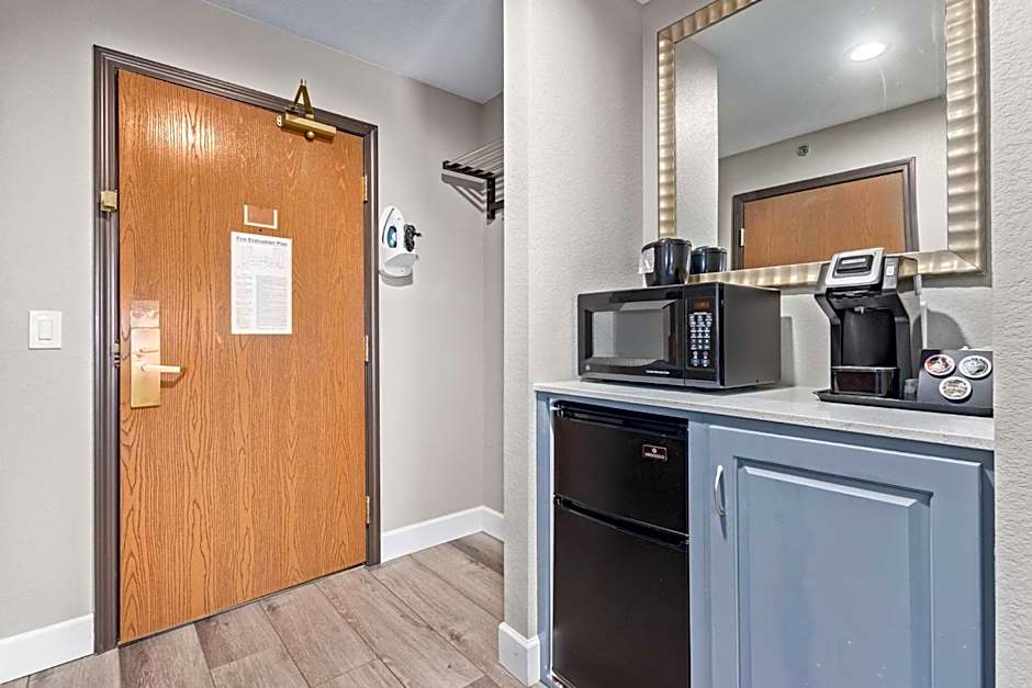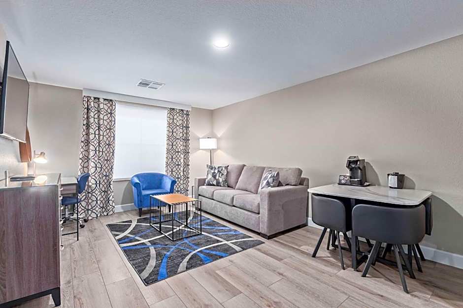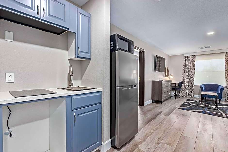The suite features air conditioning, a washing machine, as well as a private bathroom boasting a walk-in shower and a bath or a shower. The well-fitted kitchenette features a stovetop, a refrigerator, kitchenware and a microwave. This wheelchair accessible suite has a tea and coffee maker, a seating area with a flat-screen TV and a roll-in shower.